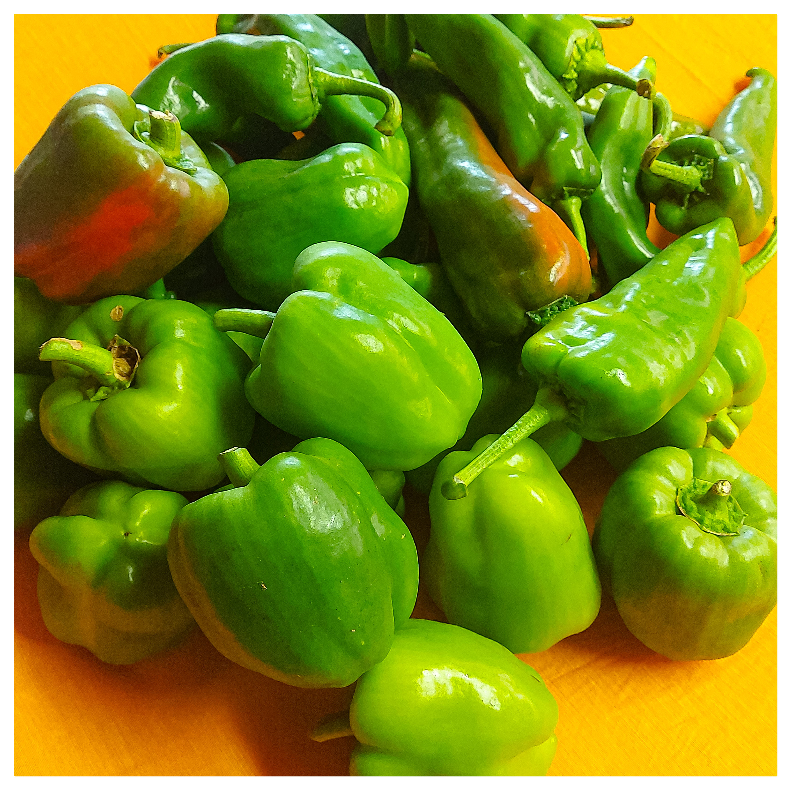 Zutaten für 4 Personen: 200g Zwiebeln, 400g Kartoffeln, 600g grüne Paprika, 600g Zucchini, 4 El Olivenöl, 1l Gemüsebrühe, 1 Becher Crème fraiche, Pfeffer, Salz, etwas Schnittlauch